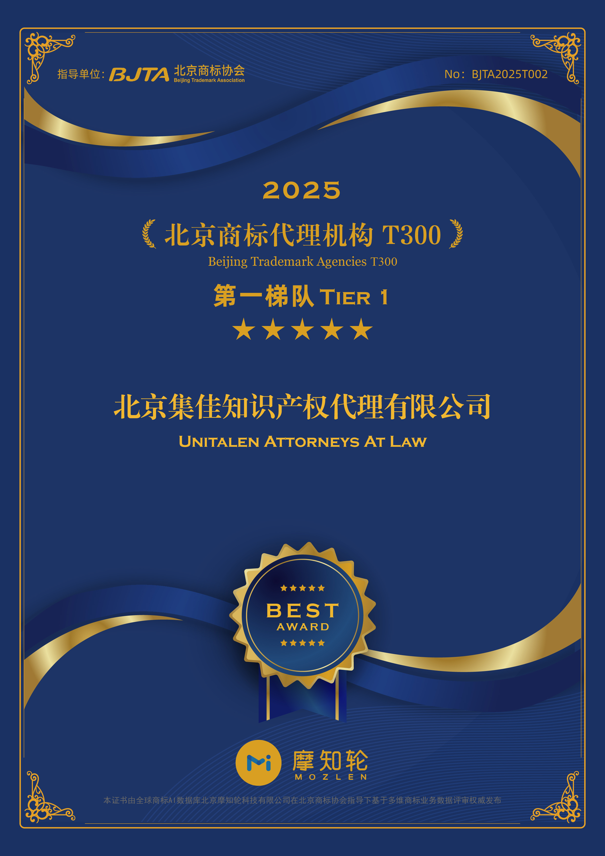 “北京商標(biāo)代理機(jī)構(gòu) T300” 榜單由北京商標(biāo)協(xié)會(huì)指導(dǎo),由全球商標(biāo)AI數(shù)據(jù)庫(kù)摩知輪設(shè)計(jì)搭建,建立在全面嚴(yán)謹(jǐn)?shù)脑u(píng)價(jià)體系之上,涵蓋商標(biāo)申請(qǐng)、復(fù)審、訴訟、典型案例、服務(wù)質(zhì)量、國(guó)際影響力、人才團(tuán)隊(duì)等全方位的多個(gè)關(guān)鍵指標(biāo),并通過對(duì)指標(biāo)的嚴(yán)格數(shù)據(jù)收集、科學(xué)分析和公正評(píng)估,多維度評(píng)估代理機(jī)構(gòu)的綜合實(shí)力。T300的發(fā)布,為北京商標(biāo)代理行業(yè)樹立了鮮明標(biāo)桿,有助于推動(dòng)北京商標(biāo)代理行業(yè)整體水平提升,促進(jìn)商標(biāo)事業(yè)朝著更規(guī)范、專業(yè)、高效的方向穩(wěn)步邁進(jìn)。