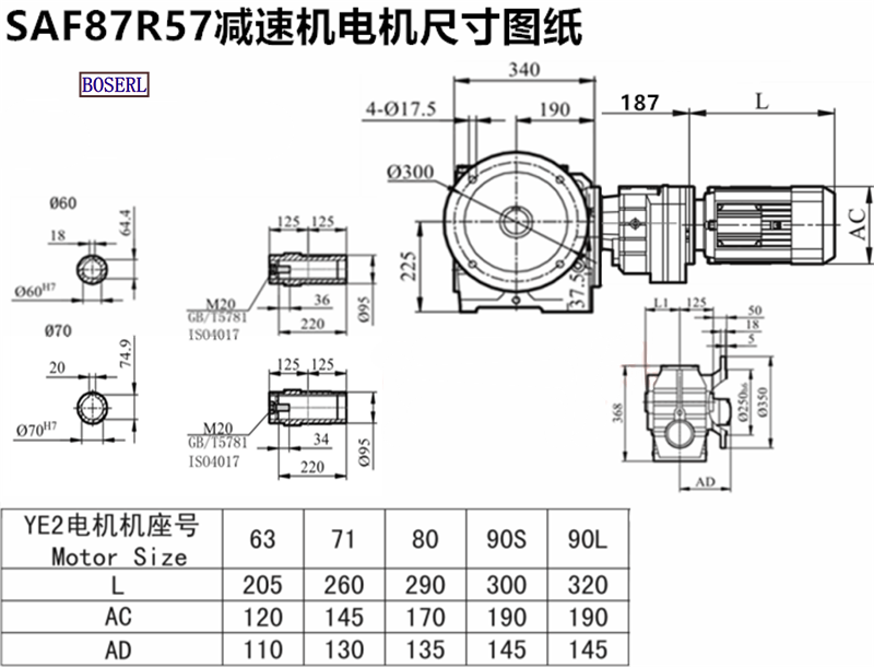 | SAF88R58DRS71M4 | SAF88R58Y0.37KW | SAF88R58YS71M4 | 蝸輪蝸桿減速機(jī) |